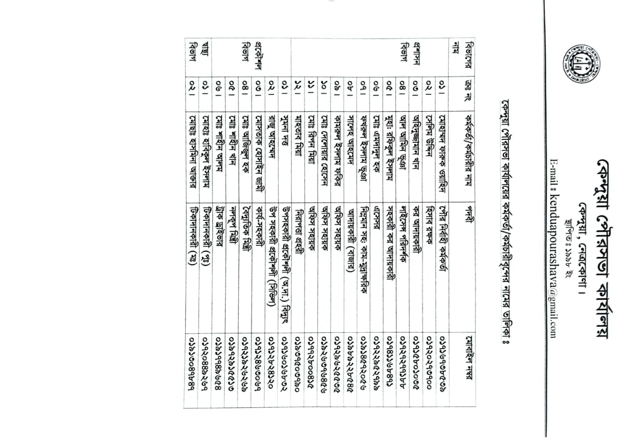 | ক্রমিক নং | কর্মচারীর নাম | পদবী | যোগাযোগ |